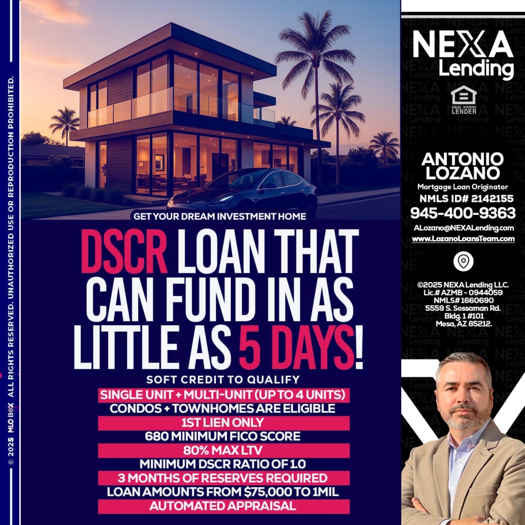 Hi, my name is Antonio Lozano. I’m a Loan Officer with NEXA Mortgage LLC., offering personalized mortgage solutions, fast customized quotes, great rates and service with integrity.