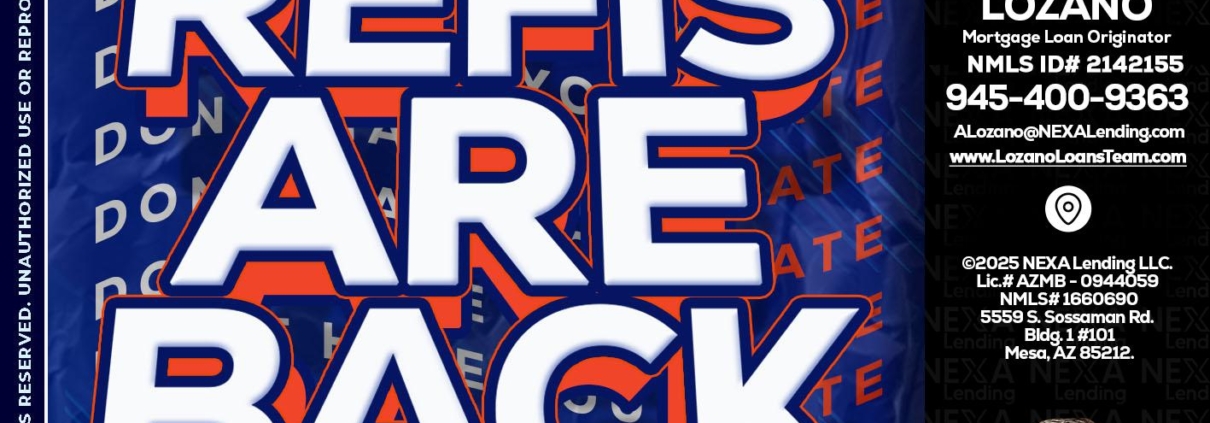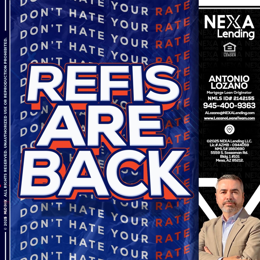 Hi, my name is Antonio Lozano. I’m a Loan Officer with NEXA Mortgage LLC., offering personalized mortgage solutions, fast customized quotes, great rates and service with integrity.